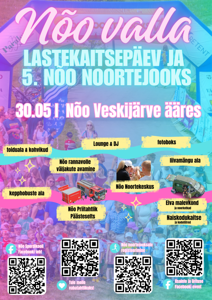 Avaleht Koolivaheajal 13.04.26-17.04.26 olema avatud kella 16.00-21.00 V NÕO NOORTEJOOKSU Reistreerimine Kogu lastekaitsepäeva info siit